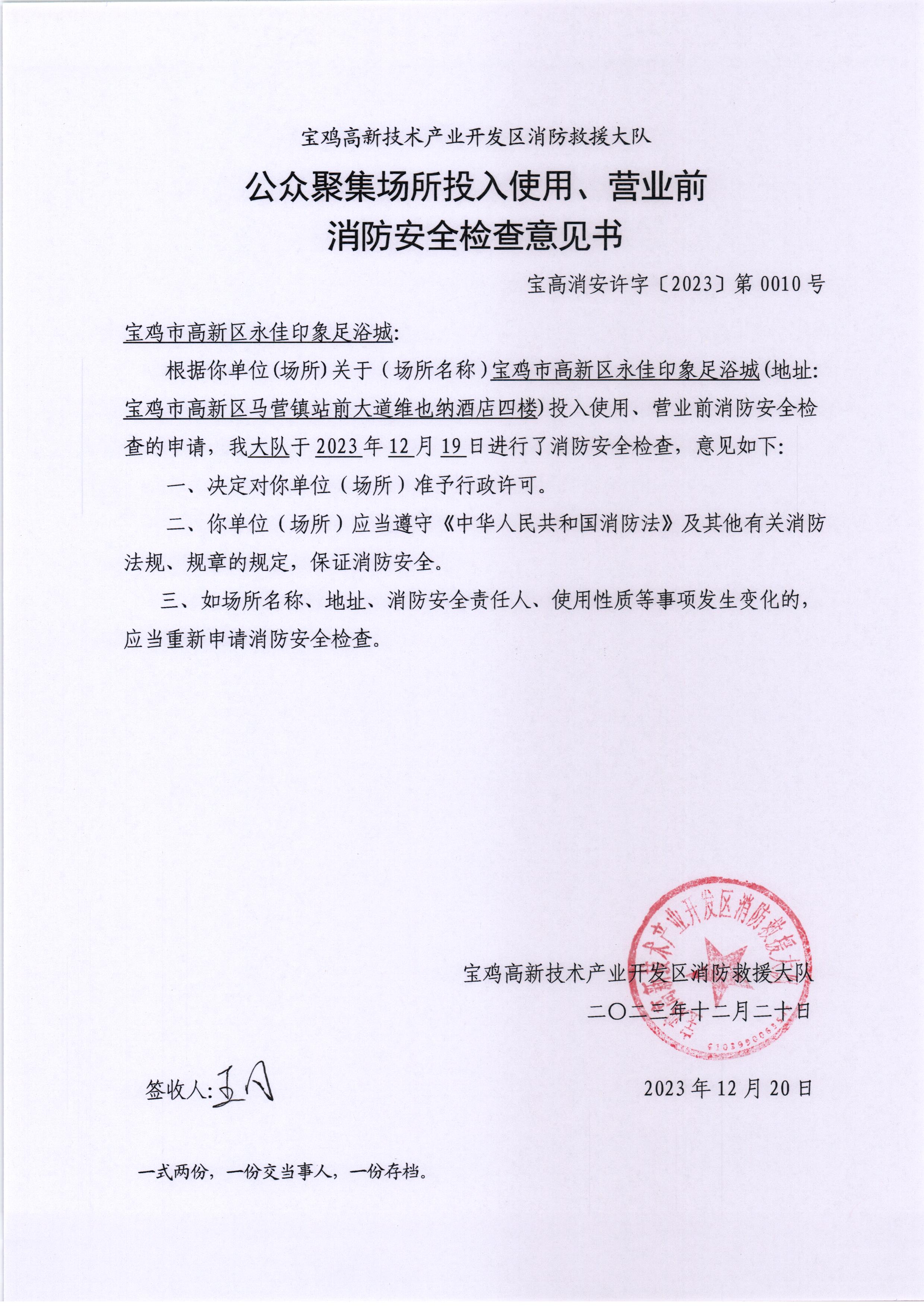宝高消安许字〔2023〕第0010号 |