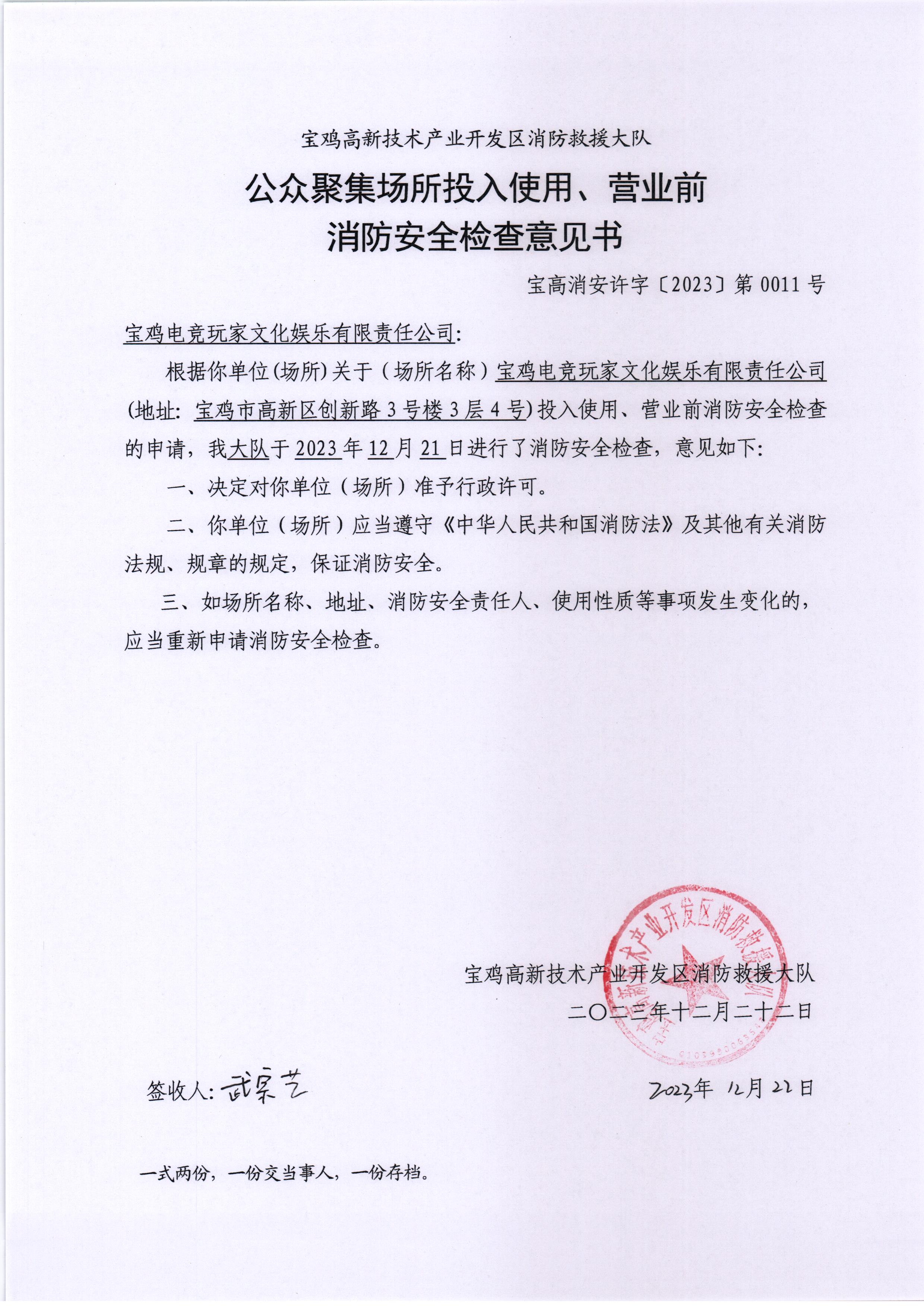 宝高消安许字〔2023〕第0011号 |