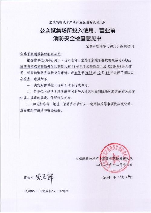 宝鸡千家瑞禾餐饮有限公司 |